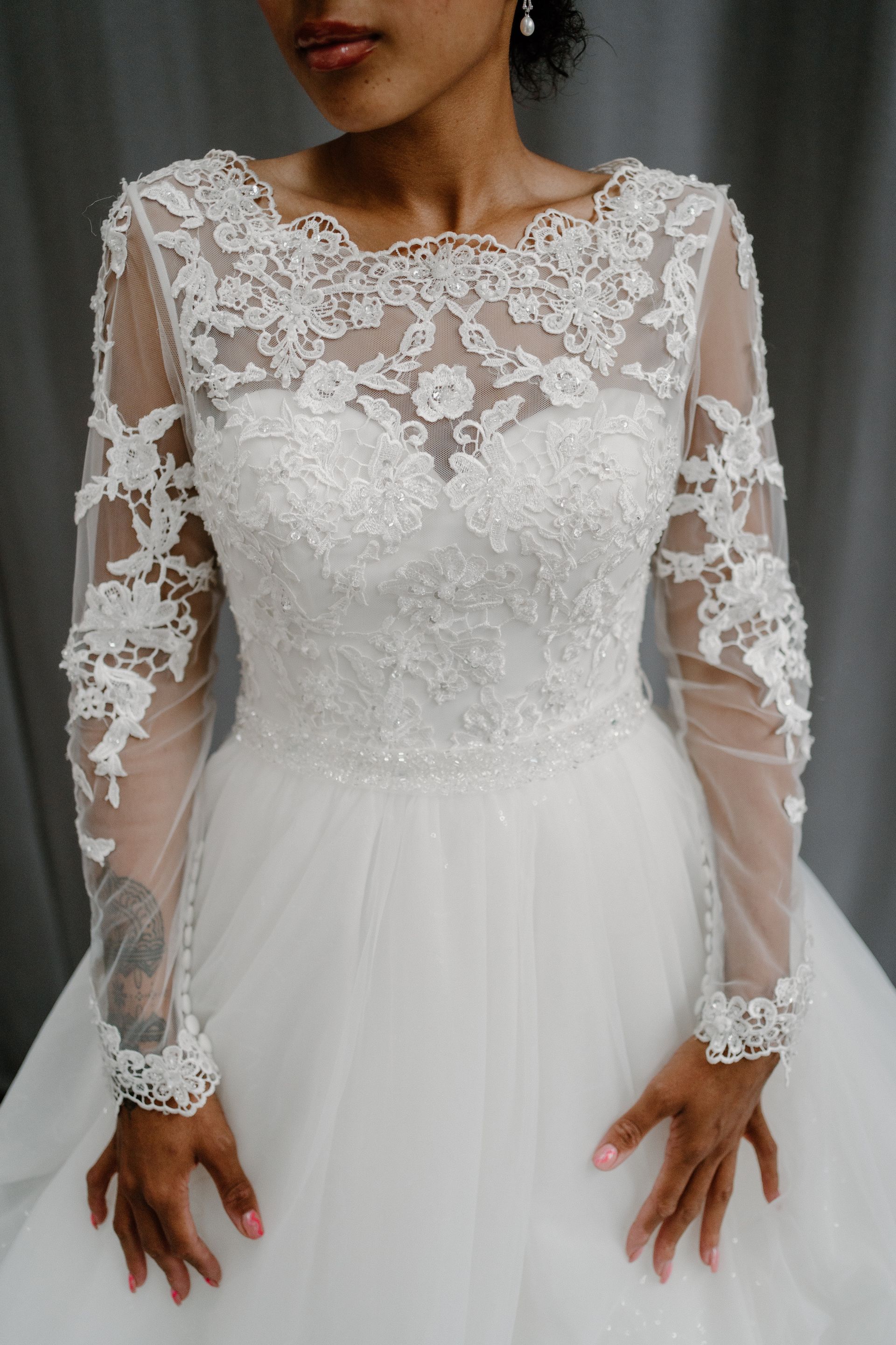These dresses come in general bridal sizes, usually ranging between UK 6 to 18 depending on the gown. Size availability may vary, so we recommend booking an appointment to try them on in person.