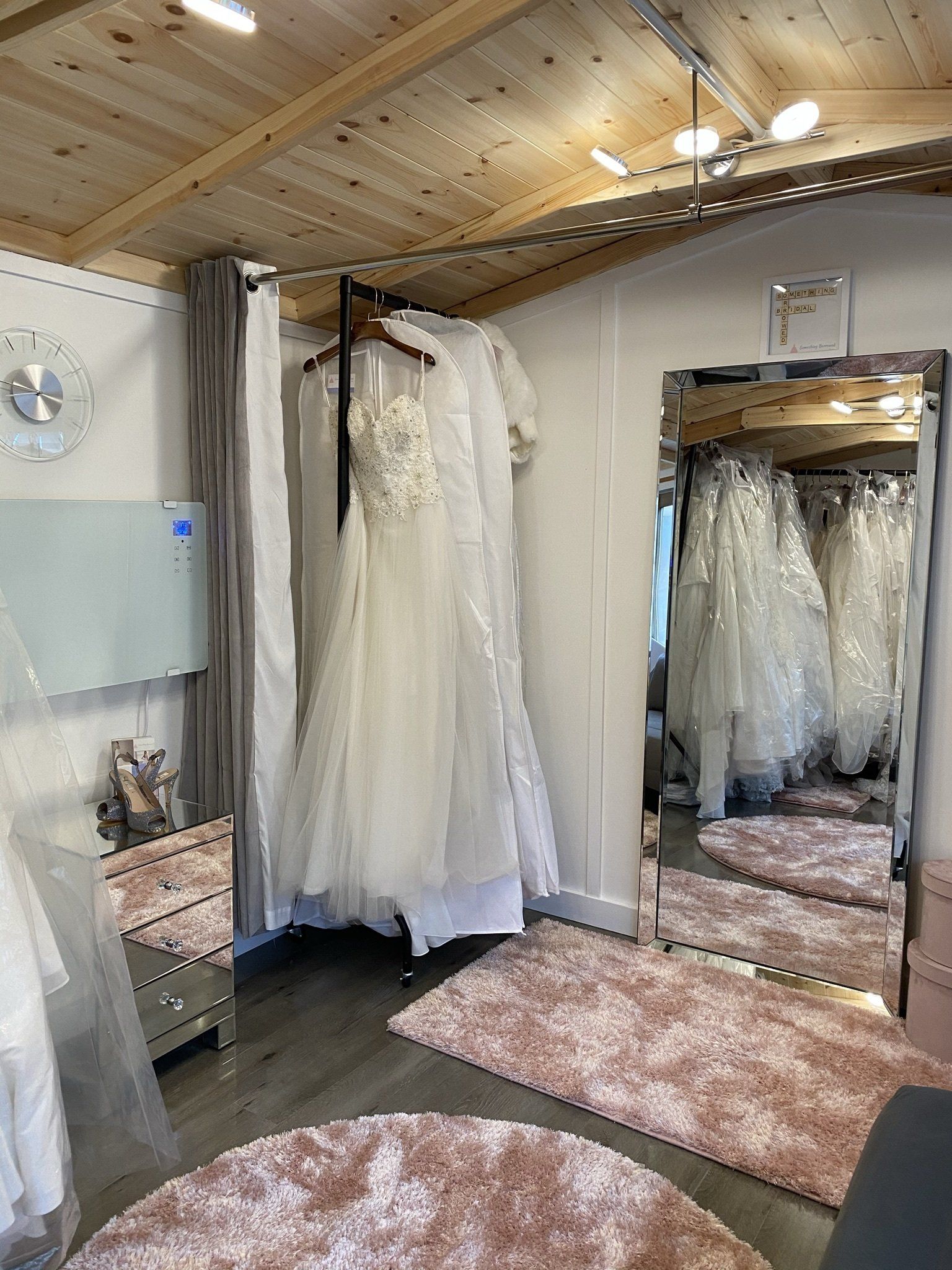 “We want our brides to have a special and exciting time choosing their wedding dress. Our new exclusive bridal salon will be the perfect private space for brides to view and try on our collection of beautiful designer wedding dress for hire. Light and airy, with a sofa for guests and private changing area, all the give the bride the best possible and fun experience.”