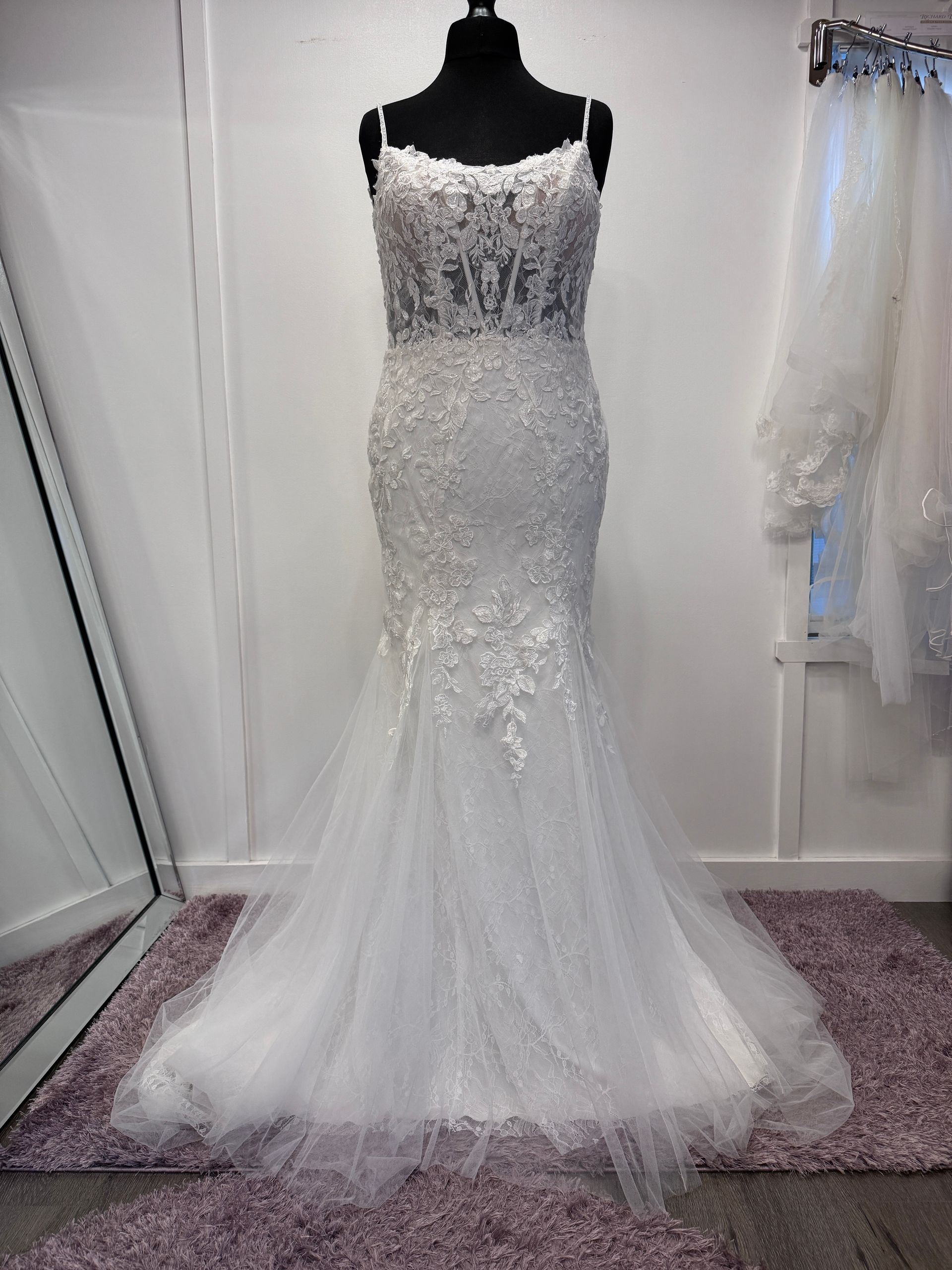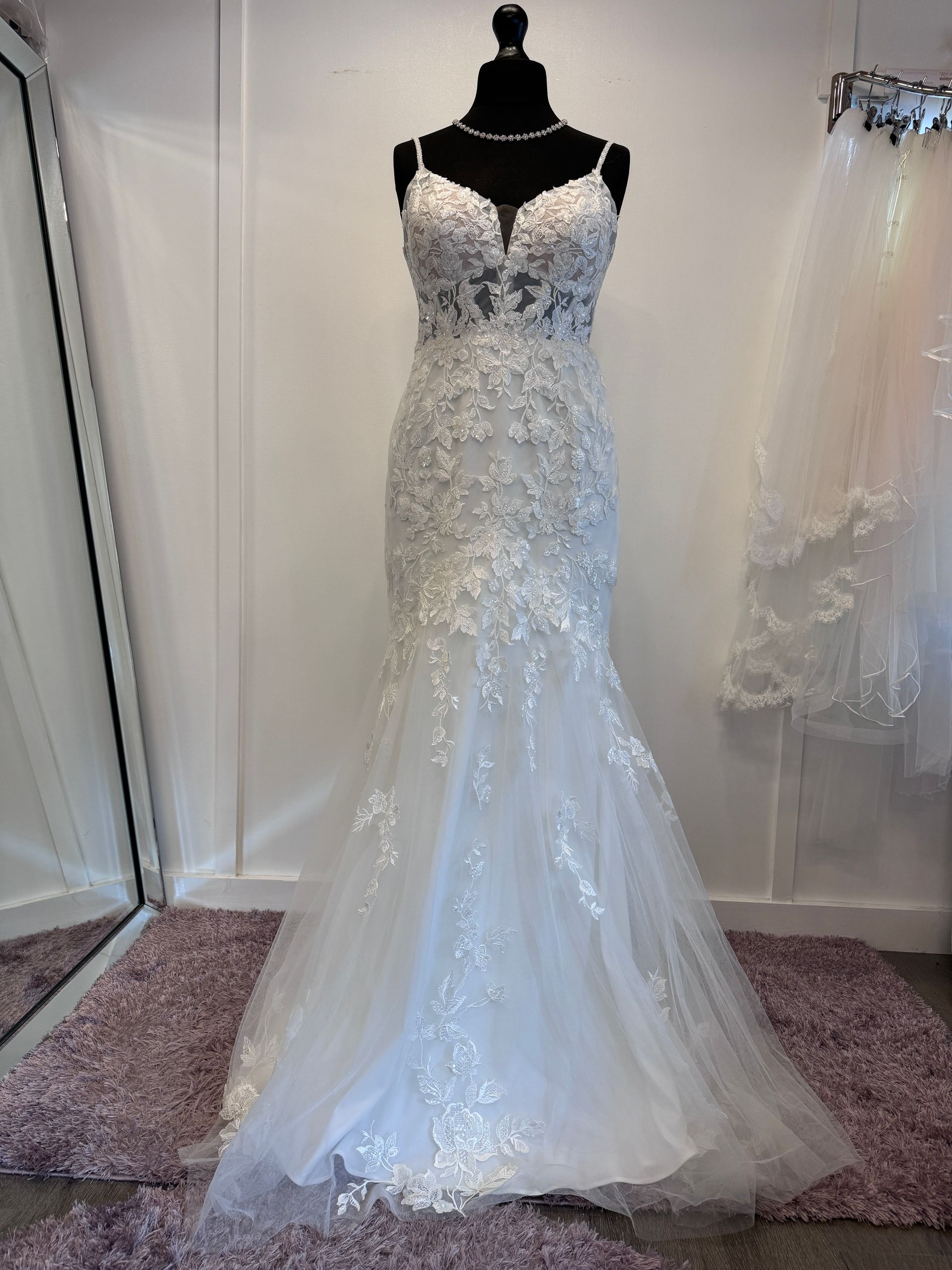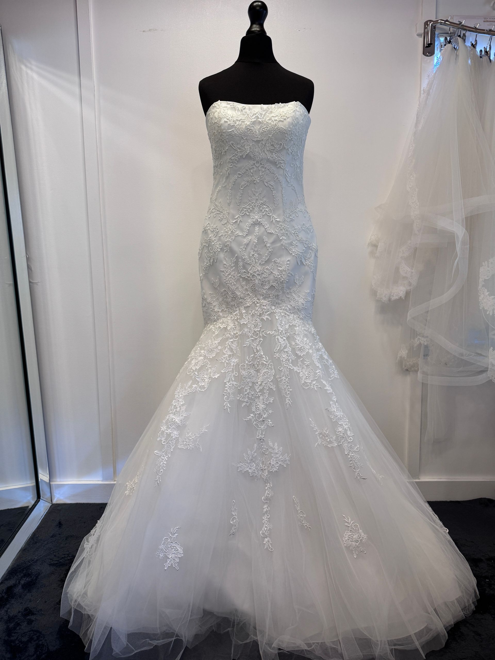 These dresses may have been tried on by brides but not worn and are sold as seen. They may need alterations for the perfect fit (as standard with bridal gowns) and perhaps a little dry clean.