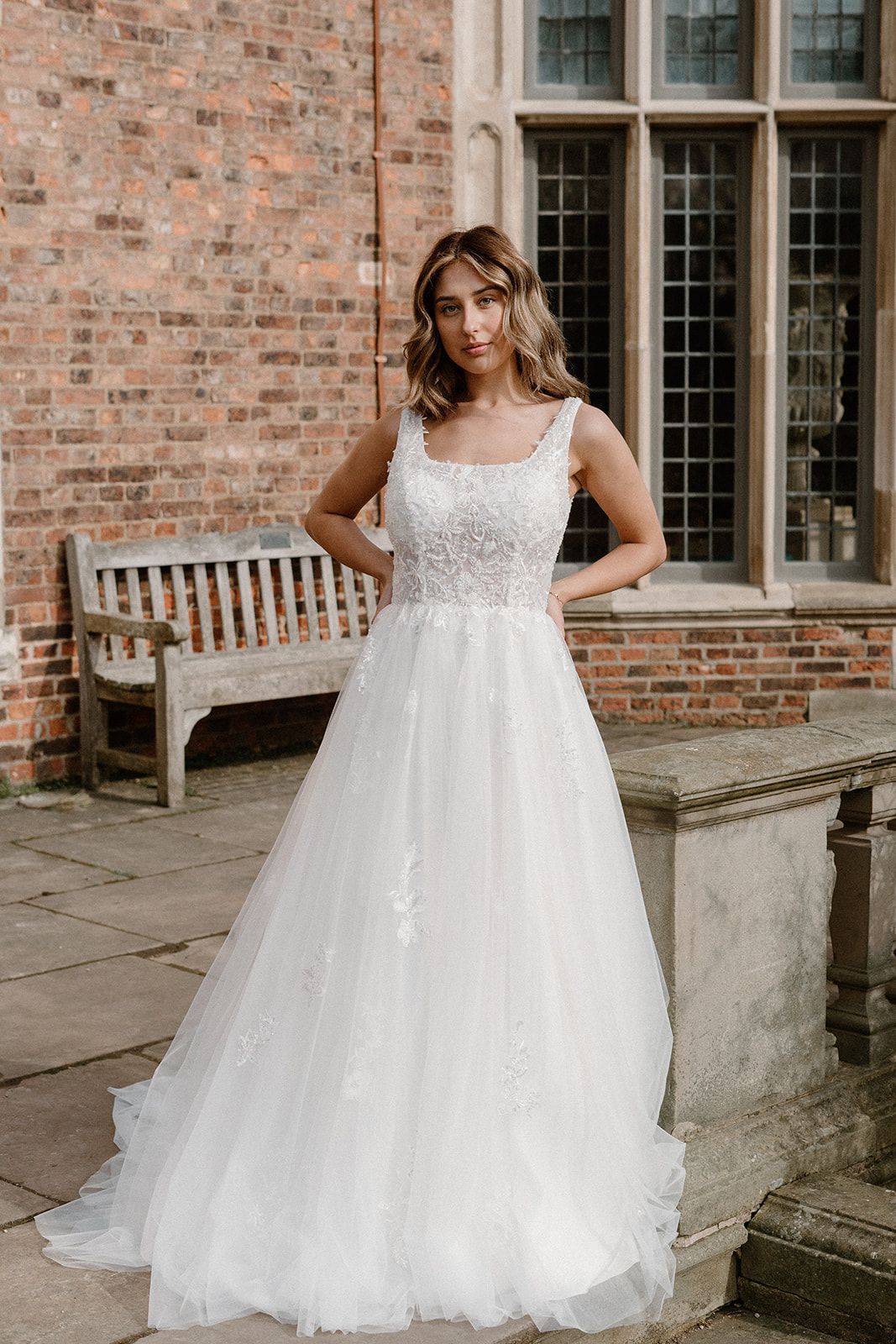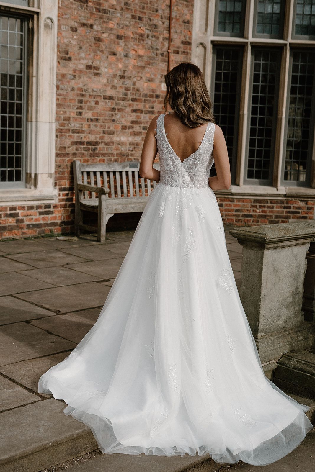 Size 12 (with lined bodice) available to hire or purchase as a sample dress.
