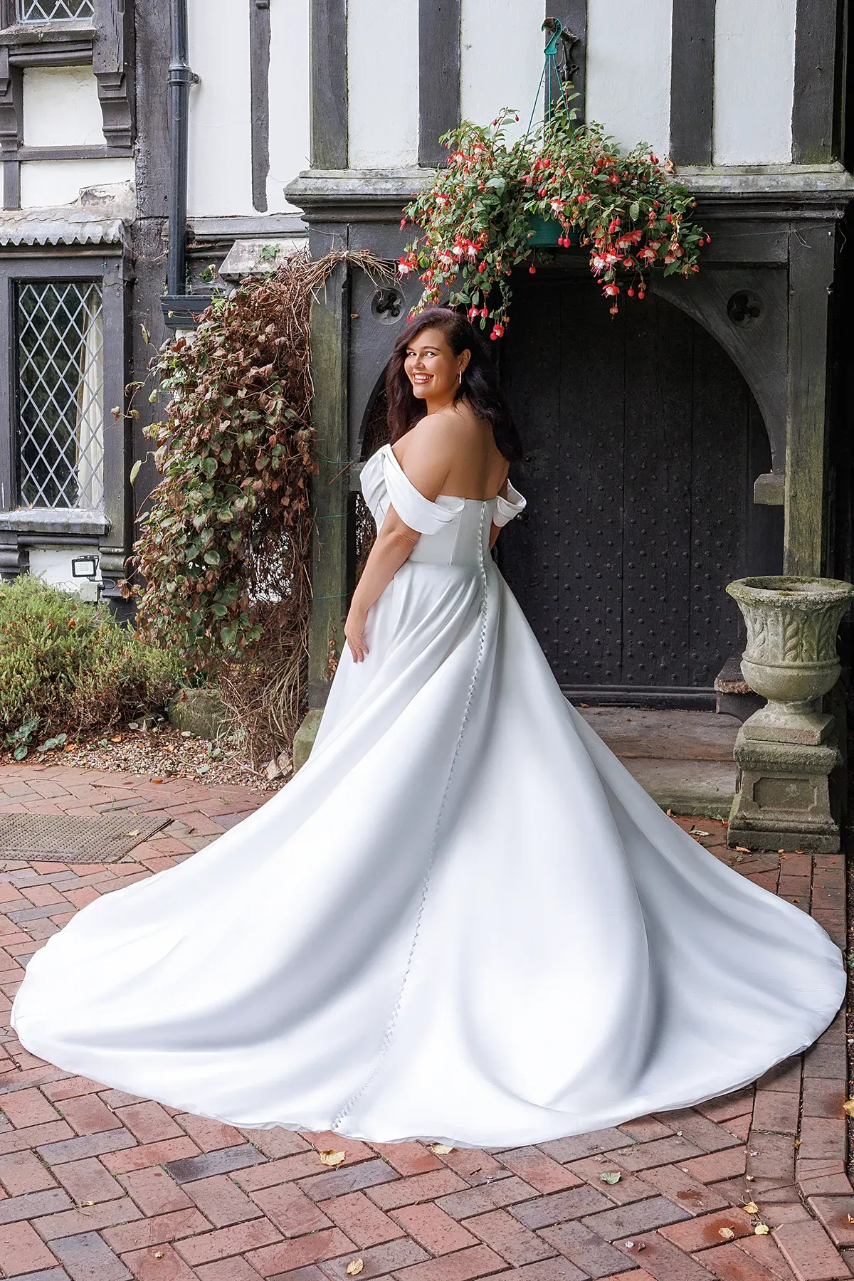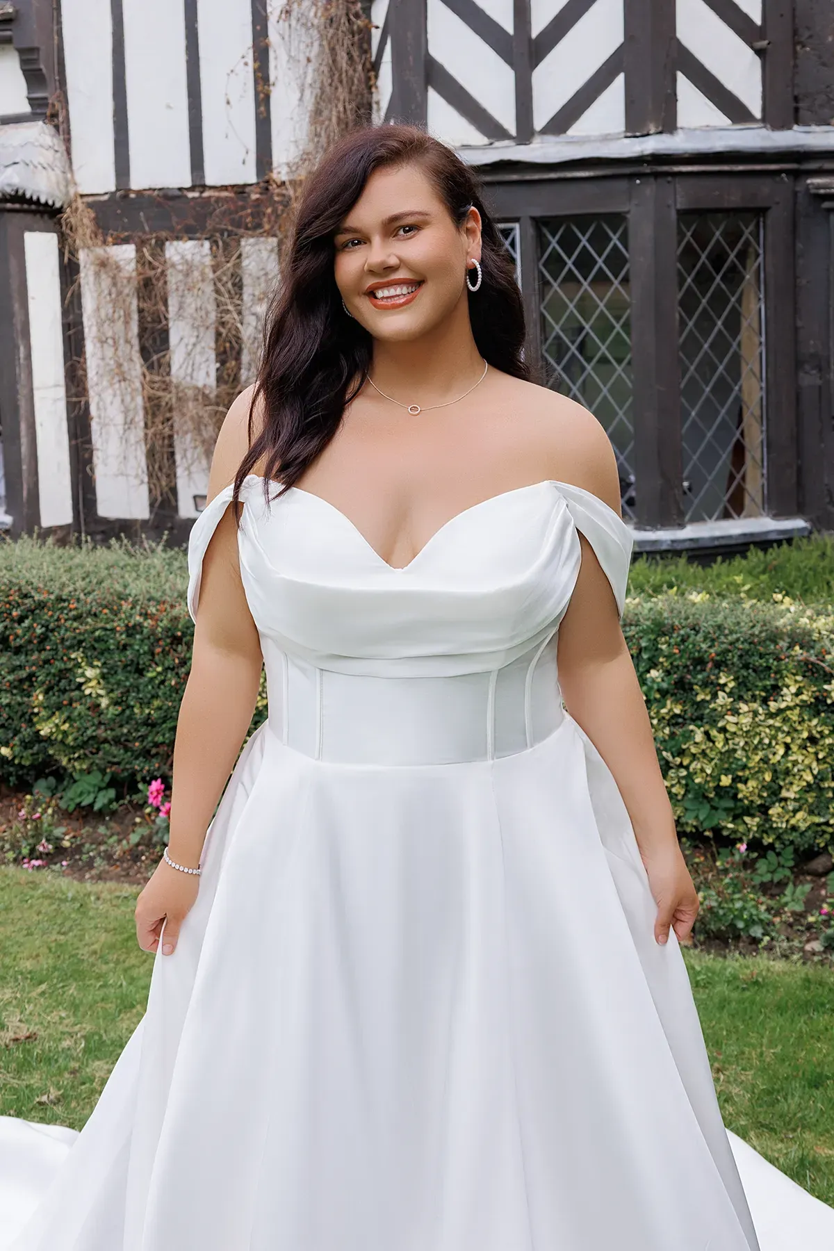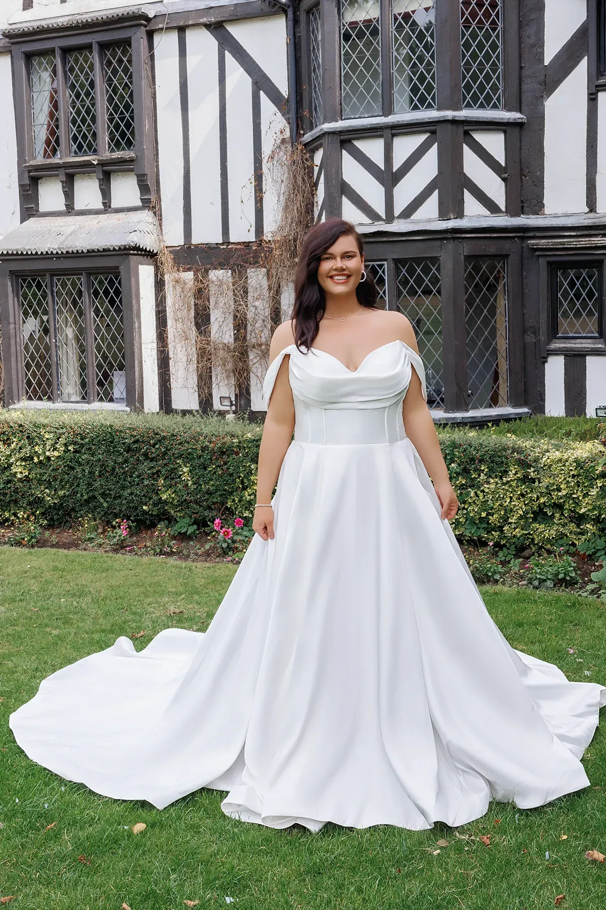 Available to re-order in for purchase in sizes 16-32, in ivory with corset or zip back.